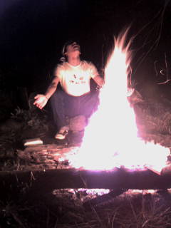 ということで、ビールを飲みながら火おこしを開始。まあ、僕はほとんど遊んでただけだけどね。上半身はだかで。で、まあ、肉などを食べていたら日が暮れて、ひぐらしが鳴きはじめたんだけども、周りが森だからよく響くったらありゃあしない。